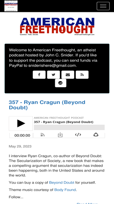 An atheist podcast hosted by John C. Snider. "Question. Think. Decide." If you'd like to contribute to the podcast, you can Paypal funds to sniderishere@gmail.com.