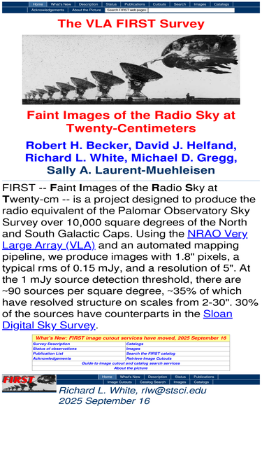 very large array (vla) first survey (radio images of the sky at twenty-centimeters), an astronomical radio survey of the sky at freqency 1.4 ghz (wavelength 20 cm)