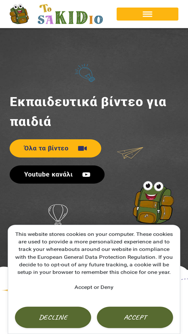 Το sakidio είναι ένας ιστοχώρος που φτιάχτηκε με πολύ μεράκι, συνέπεια και σεβασμό με σκοπό να φιλοξενήσει μεγάλης ποικιλίας εκπαιδευτικά βίντεο καθώς και τις προτάσεις μας διδακτικής αξιοποίησής τους.