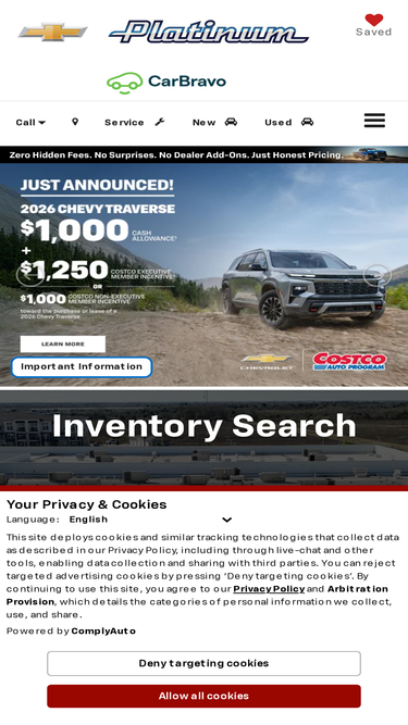 100%Platinum Chevrolet serving Dallas offers the best deals on Chevy trucks, SUVs, and EVs, certified service, attractive financing options, and deals on the latest Chevy models. Visit our %(city% Chevrolet showroom.