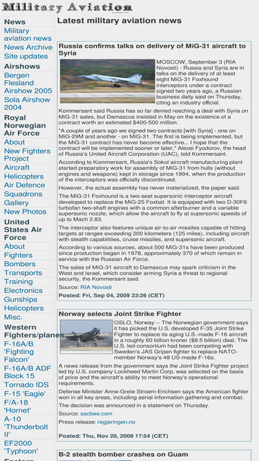 latest military aviation news. general information, squadron lists, and photos for various us and royal norwegian aircraft and other fighers/jets.
