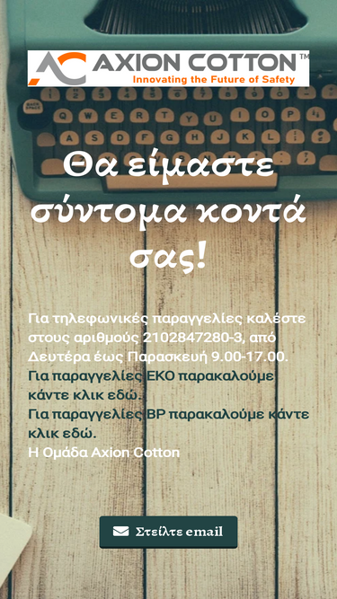 73%Λύσεις σε μέσα ατομικής προστασίας, ρούχα εργασίας και custom made επαγγελματικά ρούχα από την Axion Cotton για ασφάλεια, άνεση και στυλ στον επαγγελματικό σας εξοπλισμό.