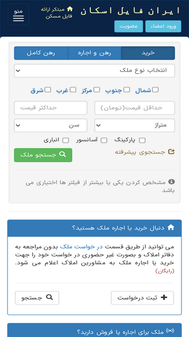 100%شبکه سراسری املاک ایرن - خرید و فروش اینترنتی مسکن در ایران - درج آگهی رایگان ملک جهت خرید فروش رهن و اجاره املاک - جستجوی آپارتمان زمین خانه ویلا کلنگی