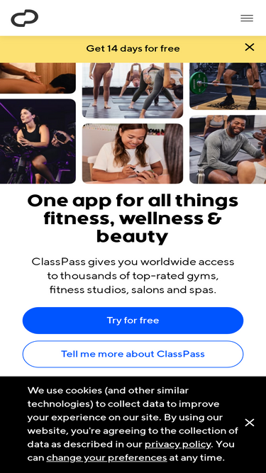 90%try the best fitness classes, gyms, wellness and beauty venues with one app. in-studio, outdoor and digital options available in over 2,500 cities worldwide.