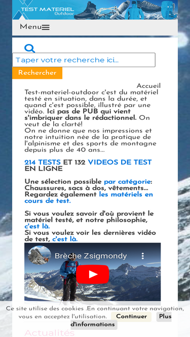 40%site spécialisé de tests de matériels de montagne. des images, des explications, des vidéos