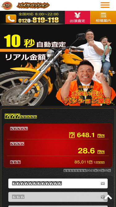 10秒でリアルな買取査定金額がわかる自動査定はこのページに!オートバイの買取は誠実な査定姿勢と最高の買取額が評判のバイクパッションにお任せください。首都圏最大級のバイク販売店も併設している当社だからこそ実現できる買取額がございます。