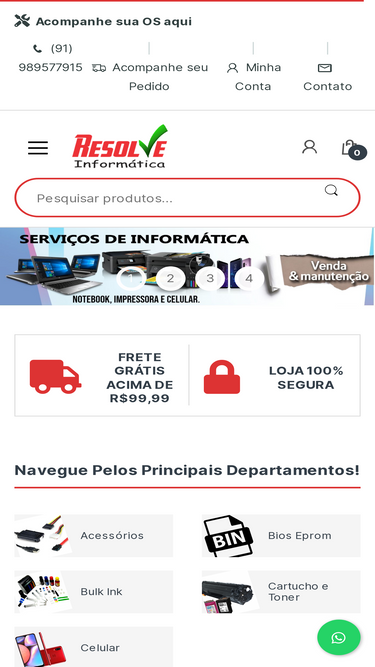 Página de contato, horário de funcionamento, localização da Loja física e virtual Resolve Informática de Belém/PA
