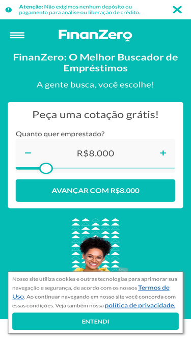 Empréstimo pessoal rápido e 100% online é na FinanZero. As taxas de juros que cabem no seu bolso. Faça seu pedido agora mesmo!