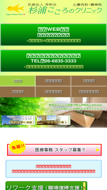 千里中央の心療内科 杉浦こころのクリニック(豊中市)は、働く人のための「こころの癒し」を専門とする北摂千里中央駅直結の心療内科・精神科のクリニックです。