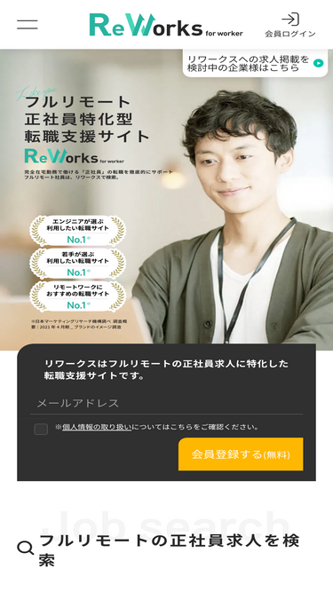 フルリモート正社員への転職・求人情報を検索するならReWorksリワークス。転勤の心配も無し。リモート業務社員への転職を目指せます。全国どこからでも、在宅でも働ける環境をあなたに。