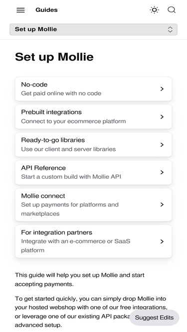 78%Easily integrate online and point-of-sale payments into your platform with our ready-made plugins or create a custom solution using the Mollie API. Start building with Mollie today.