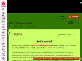 Welcome! Hello! You have entered the Radio-TV Broadcast History Wiki, begun in January 2006. Currently (as of October 20, 2025) there are 4,416 articles that have been created for this Wiki. The intent of the founder of this Wiki was not so much to discuss program content (though as people become active here, since Wikis tend to be pretty anarchic, they may choose to put in articles relating to program content!) but rather changes in call letters, frequency, and the like. It would be nice if...