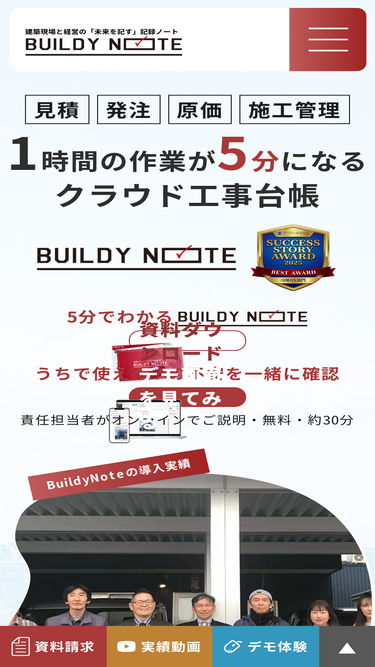 BUILDY NOTEは施工管理から原価管理まで、建設業に関わるすべての業務を一元化し効率化。多現場管理において高い評価をいただいています。