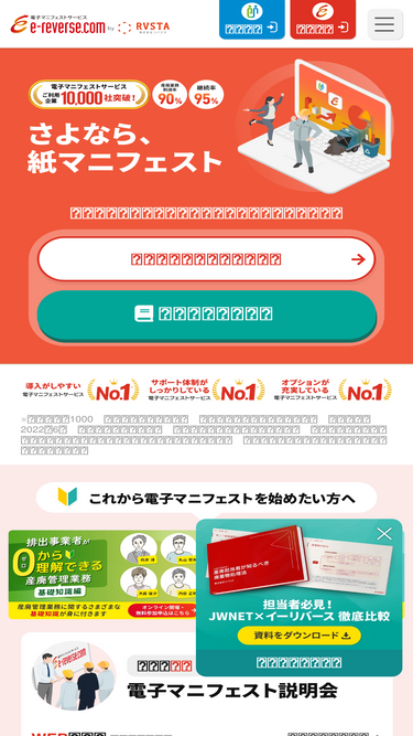 e-reverse.com(イーリバースドットコム)は、産業廃棄物処理の電子マニフェスト制度(JWNET)を簡単、便利に利用でき、作業時間を大幅に軽減できるWebサービスです。