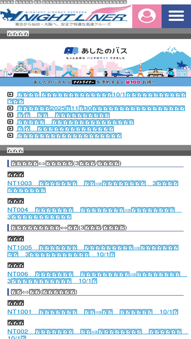 高速バス 夜行バス【ナイトライナー】(東京,新宿,仙台,大阪)