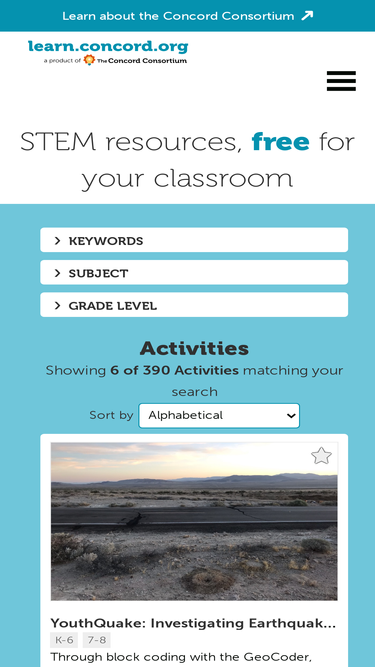 The STEM Resource Finder is a collection of the Concord Consortium's best resources for science, math, and engineering education. Our curated collections offer lesson plans and units for your class based on these resources. All for free!"