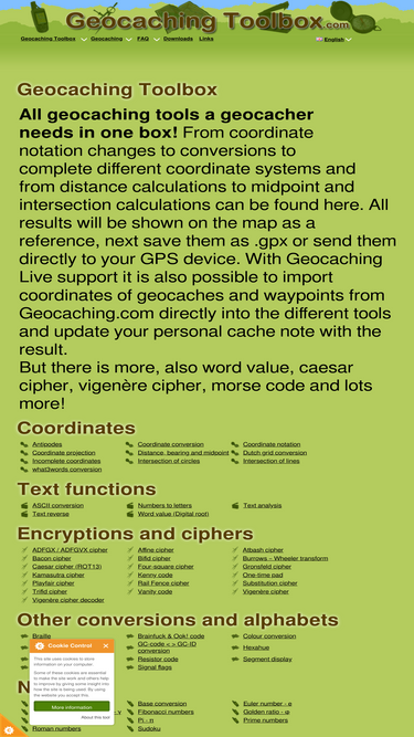 GeocachingToolbox.com. All geocaching tools a geocacher needs in one box: a lot useful geocaching tools, links, html tips and more.