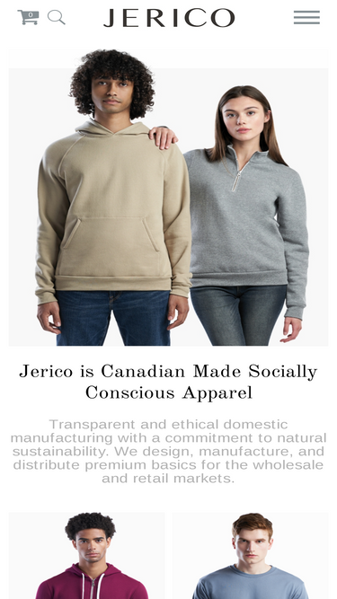 All of Jerico's clothing is manufactured in Canada to the highest ethical and environmental standards. All aspects of our supply chain - including the knitting, dyeing, cutting and sewing - are consolidated domestically.