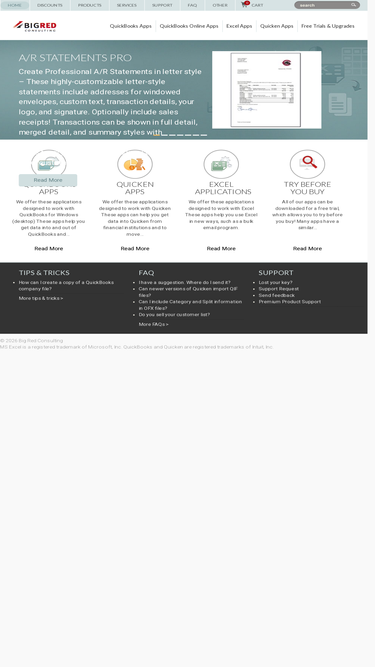 big red consulting specializes in excel-based add-ins and other productivity tools, both ready-to-use & custom solutions. many of our tools work with quicken or quickbooks, or both.