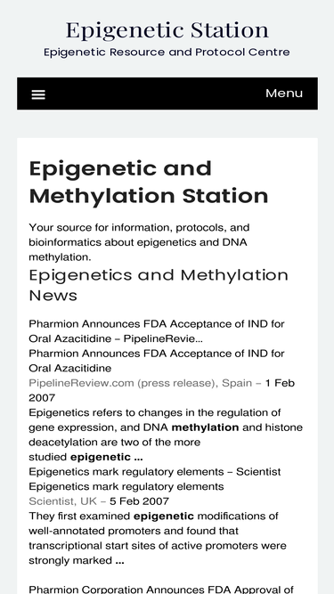 Epigenetic Station is your web source for information, reference, protocols, methods, techniques and links on epigenetics and DNA methylation.