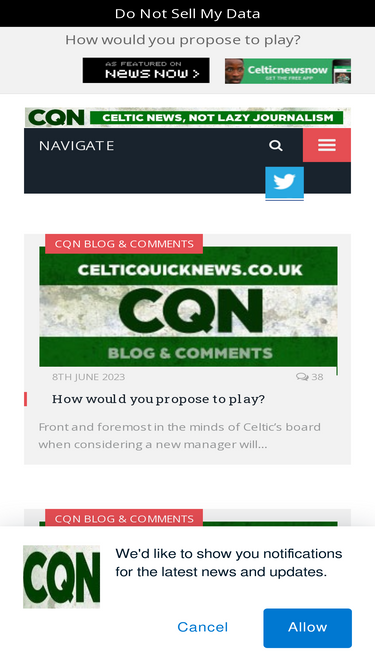 Sign in to your Celtic news now account.
