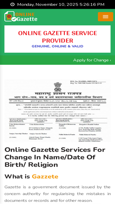 welcome to gazettegov.com we are private online gazette consultancy firm to help you for changing name in gazette, change date of birth in gazette & change religion legally online.