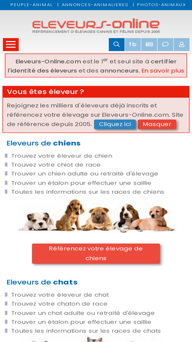 Recherchez un chien de race adultes ou retraité d'élevage avec notre liste d'annonces légales et contrôlées.