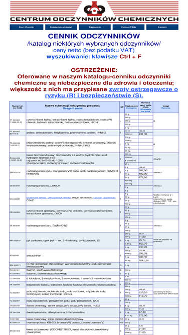 100%katalog i cennik odczynnikăłw, informacje o dostawie i sprzedaĺźy, hurt, detal, ceny, katalogowe, producent, produkcja, odczynniki, czterochlorek, tetrachlorek