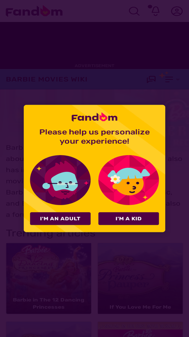 56%barbie movies wiki is a fan-made database about the animated barbie movies. this wiki also has information about shows related to the movies - barbie: dreamhouse adventures, barbie: it takes two, barbie: a touch of magic, and barbie: passport to adventure. there is also a forum for discussions.