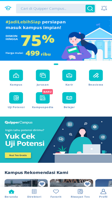 Info universitas/perguruan tinggi terbaik di Indonesia, lengkap dengan jurusan hingga beasiswa. Ingin tahu kampus berkualitas, cek di Quipper Campus!