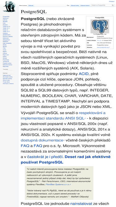 Informace o databázi PostgreSQL pro začátečníky i pokročilé