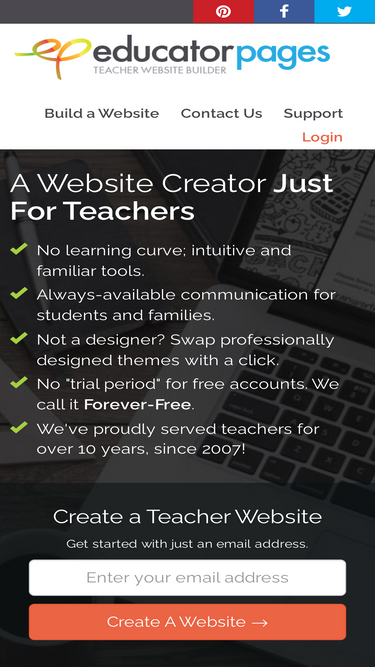 100%create a free teacher website with educator pages.