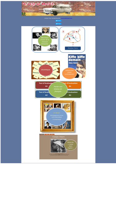 et puis... voilà! un site centré sur le français comme langue vivante, d'expression, d'apprentissage,... où vous, chers élèves, pourrez participer à son développement à partir des travaux, activités, jeux de rôle,... faits en classe de français. soyez les bienvenus!!!