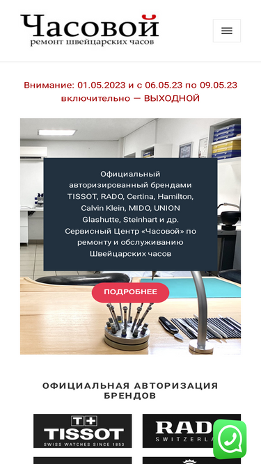 96%Сервисный центр Часовой - официальный ремонт часов TISSOT, RADO, Certina, Hamilton, CK, MIDO, Balmain, Steinhart, Aviator, Штурманские, Union, Буран, Buran