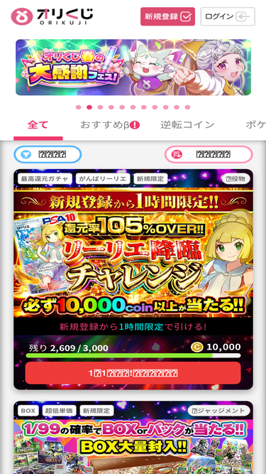 100%オリパだけどオリパじゃない!?"0円で楽しめる"新感覚オンラインガチャ・オンラインオリパ・ネットオリパなら『オリくじ』!無料でポケカのパックかBOXが必ず当たるガチャ開催中!