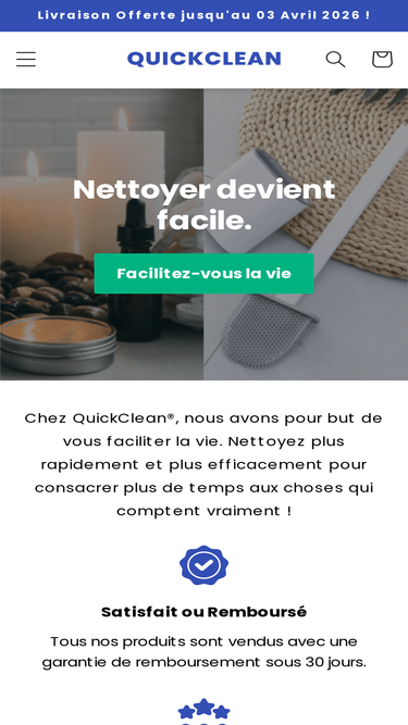 Découvrez QuickClean, le spécialiste de la propreté et du confort de votre domicile. Chez QuickClean, nous avons tout pour faire briller votre maison sans effort grâce à des produits d'entretien de haute qualité. Profitez de la Livraison Offerte en rejoignant nos 97% de Clients Satisfaits.