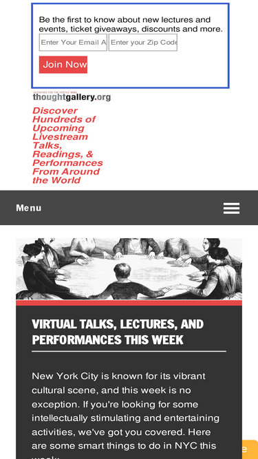 86%Discover Upcoming Talks, Readings, & Performances in NYC Get the CurriculumNYC’s most thought-provoking activities delivered weekly. Just Announced Plan to attend these great events in New York City CalendarSearch for events by date range and category:©2025 Davler Media Group LLC. All rights reserved.Get the CurriculumJoin like-minded thoughtlectuals and never miss events of interest.