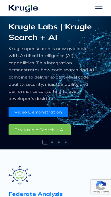 Krugle provides organizations with federated, searchable access to ALL the application code and code artifacts that define their business. Krugle analysis and discovery features pinpoint critical code patterns and diagnose application issues immediately and at enterprise scale