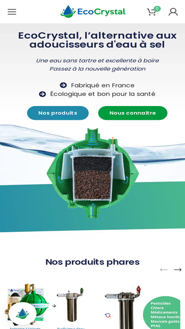 Découvrez l'EcoCrystal 2, l'adoucisseur d'eau sans sel qui protège vos canalisations et appareils électroménagers contre le tartre tout en offrant une eau de qualité supérieure. Profitez d'une eau filtrée de tous les polluants, pesticides, métaux lourds, médicaments et chlore pour une peau plus douce et une eau excellente à boire. Le système utilise une combinaison de roche volcanique et de charbon actif pour filtrer le calcaire et autres impuretés, sans utiliser de sel. L'EcoCrystal 2 est également une solution écologique qui ne consomme ni eau ni électricité et utilise une sphère filtrante consignée pour réduire les déchets. L'installation est facile et la société offre une assistance pour guider les clients tout au long du processus. L'EcoCrystal 2 est garanti 20 ans et a reçu des commentaires positifs de clients en France, Belgique, Luxembourg et Suisse.