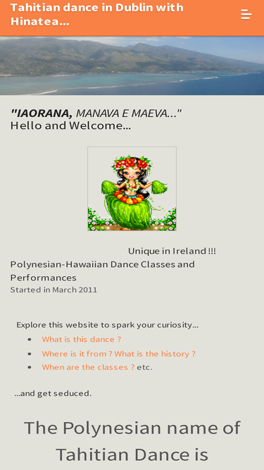 For those who like dancing and who are interested in something original. Hinatea gives you opportunity to try the tahitian dance in Dublin, sharing the polynesian culture she has in her blood. This dance provides you only positive benefits.