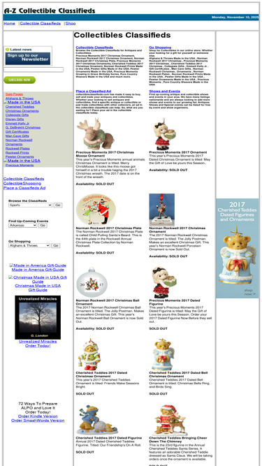 antiques and collectibles bought and sold here. place your collectibles classifieds ad today only one dollar a month. appraisals and more. find out what vendors are selling in your state. stop by today. our collectible classifieds are filled with antiques and collectibles from around the world