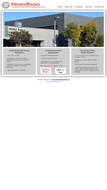 100%manufacturer of solid state rf power amplifiers. distributor of bird technologies rf measurement equipment. provider of a trunking two-way radio repeater service for los angeles / orange county radio communication.