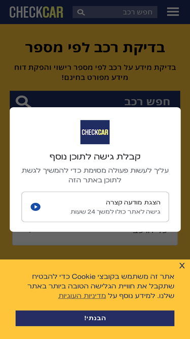 קבלו סרטון הדגמה איך לבדוק מידע על רכב לפני קנייה עם CheckCar. עם צק קאר ניתן לבצע כמה חיפושים שרוצים וזה בחינם לגמרי.