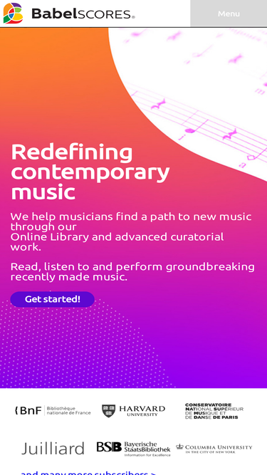 babelscores aims to redefine contemporary music trhough its online library and advanced curatorial work. we present the best of freshly made written music. read, listen to and perform groundbreaking recently made music.
