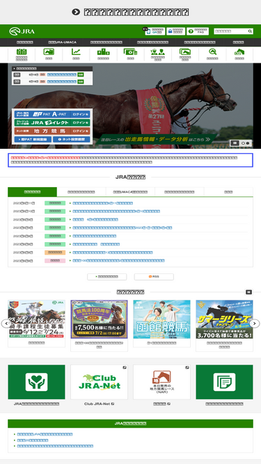 jra日本中央競馬会の公式ホームページです。出馬表、オッズ、払戻金、レース結果などの確認やインターネット投票が行え、また、全国の競馬場、ウインズのイベント情報など中央競馬に関することを掲載しています。