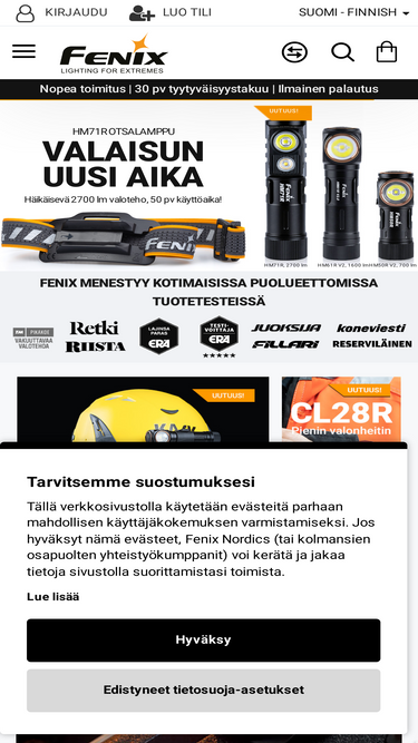 92%Testivoittaja Fenix LED taskulamput, otsalamput, pyöränvalot, retkilyhdyt. Suomen suurin Fenix lamppukauppa. Nopea toimitus - Edulliset hinnat - Ilmainen palautus.