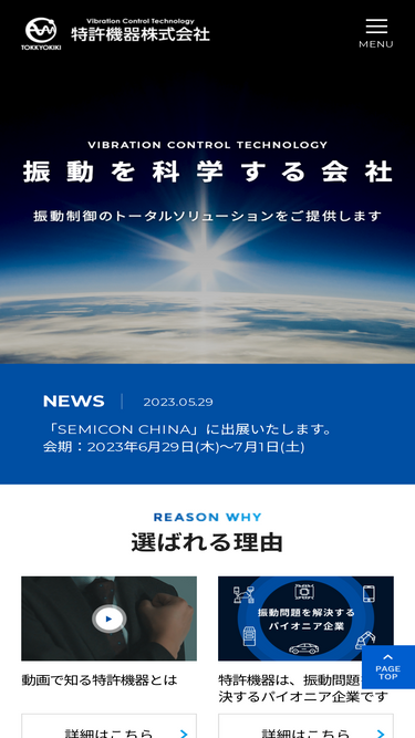 振動制御のトータルソリューションをご提供します。製品情報や振動対策事例をご紹介。特許機器は、振動・騒音測定の結果を徹底的に解析し、建物の用途や構造を考慮した上で、多角的で最適な解決策をご提案いたします。