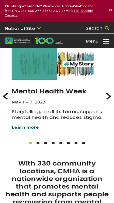With 330 community locations, CMHA is a mental health charity in Canada that promotes mental health nationwide and supports people recovering from mental illness.
