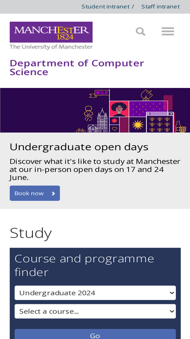 discover the university of manchester's department of computer science - world-renowned and the birthplace of modern computing.