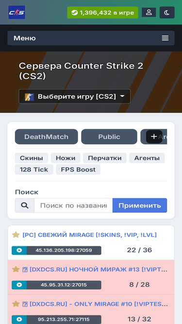 74%Игровые сервера в CS2 (CS2): Играй у нас на AWP, PUBLIC, FPS PUBLIC, FUN